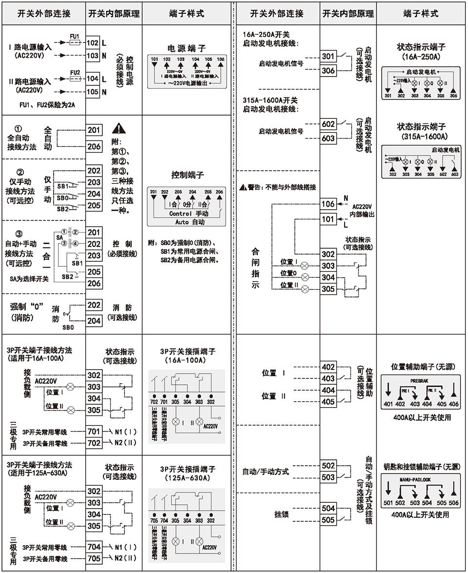 ◎电气钥匙锁:控制开关内部控制线路电源,开启时,开关实现自动、远控操作,关闭时,开关只可手动操作。