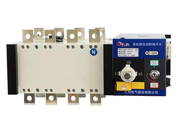 SWQ3系列PC级双电源自动转换开关(以下简称ATSE)是集开关与逻辑控制于一体,无需外加控制器,真正实现机电一体化的自动转换开关,具有电压检测、远程控制、电气、机械互锁等功能,可实现自动、电动远程、紧急手动控制。操作是由逻辑控制板以各种逻辑命令来管理电机、变速箱的操作运行来实现,电机带动开关弹簧贮能,瞬时释放的加速机构,快速接通分断电路或进行电路转换,通过明显可见状态实现安全隔离,