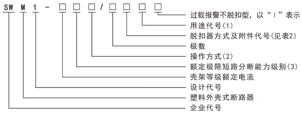SWM1系列塑料外壳式断路器(以下简称断路器),是本公司开发的新型断路器之一。其额定绝缘电压为800V(SWM1-63为500V),适用于交流50Hz,额定工作电压690V及以下(SWM1-63为400V),额定工作电流至1250A的配电网络中,用来分配电能和正常工作条件下作线路不频繁接通、分断转换之用。断路器具有过载短路和欠电压保护功能,能保护线路和电气设备不受损坏。